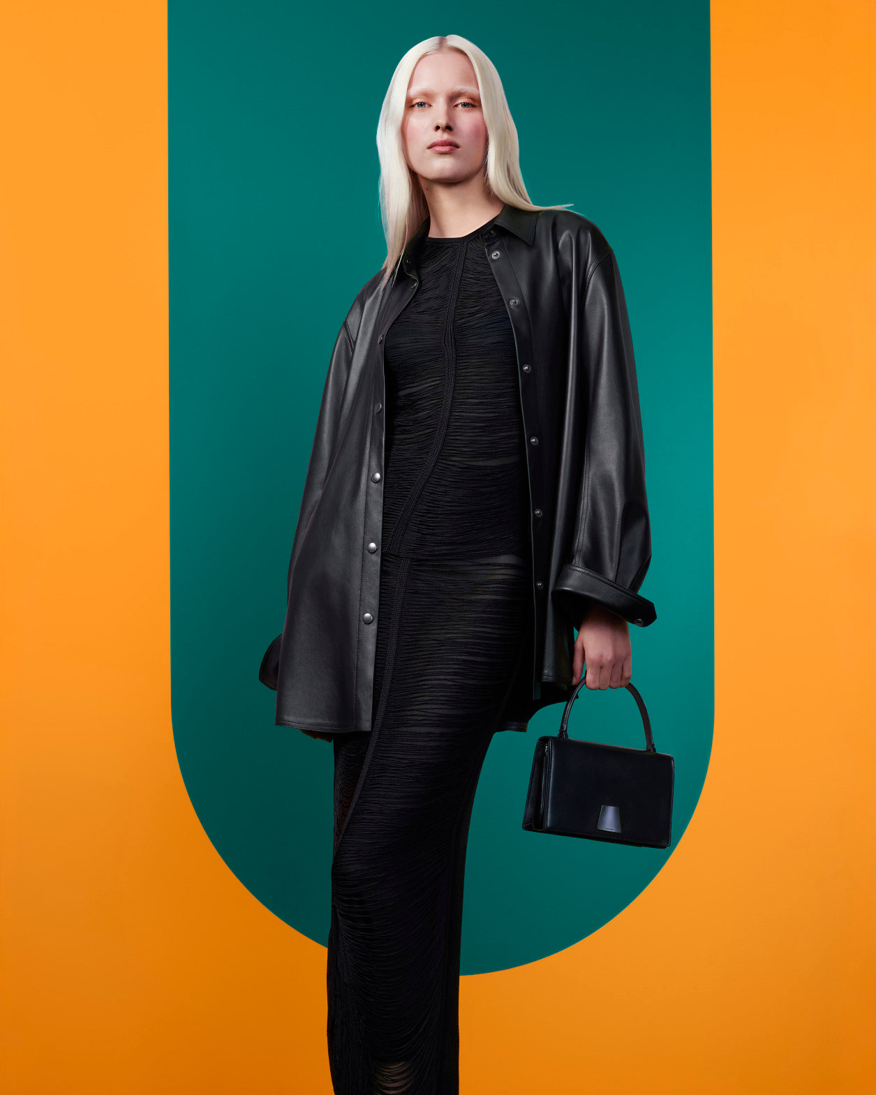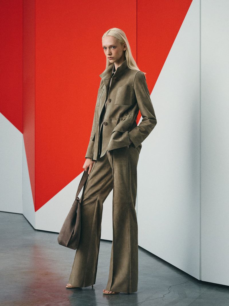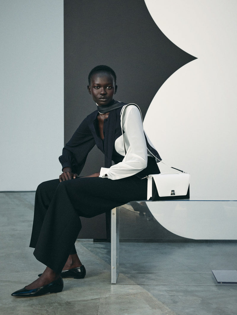 This season, Albert and his team sharpen the tailoring and elevate the silhouette with a front panel, introducing the cropped Tuxedo Duo Jacket — a new expression of confident ease. Its structured silhouette echoes the clear lines of Leon Polk Smith’s work.