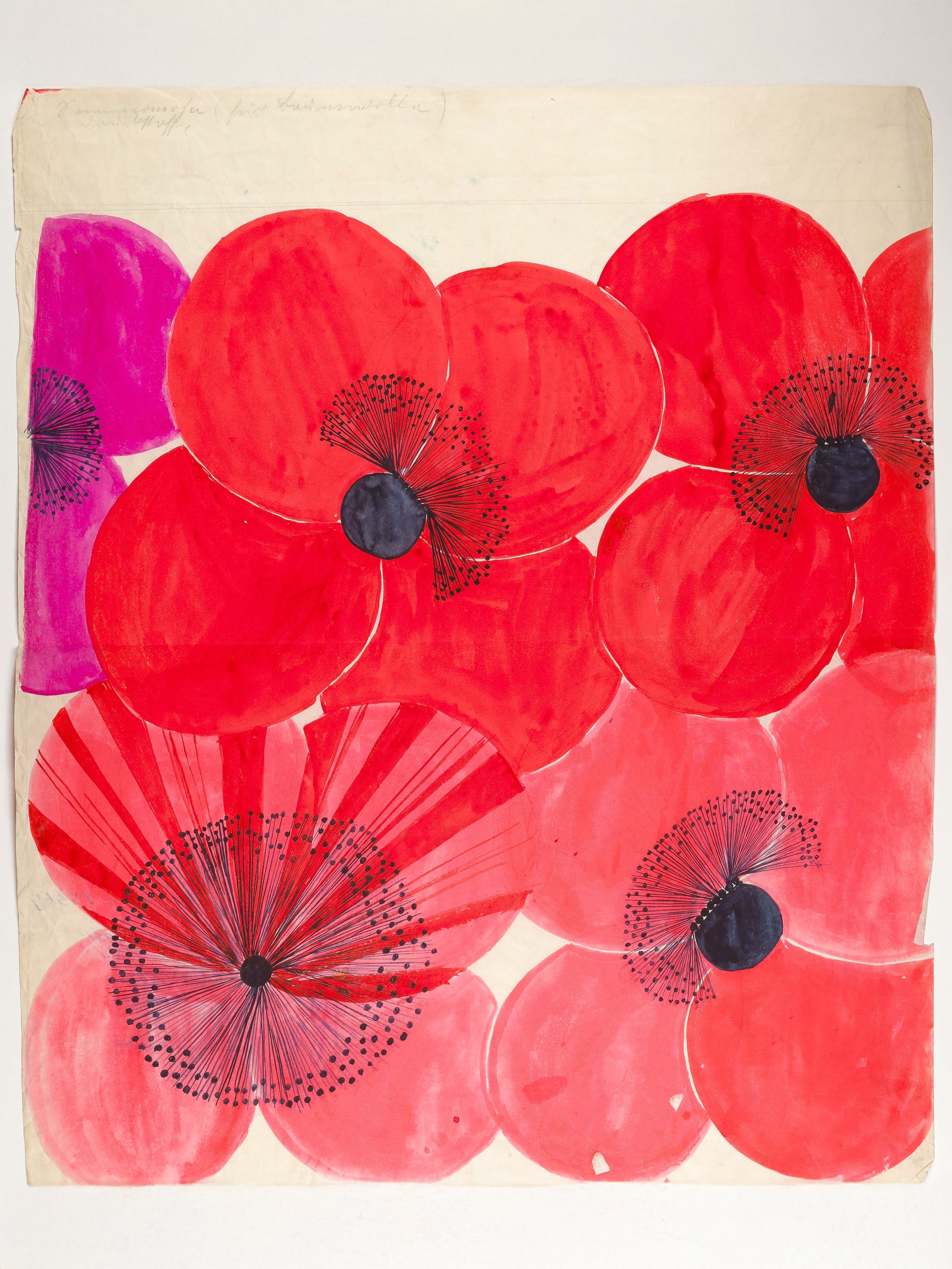 Design for WW fabric "Mohn" [Poppy], ca. 1929. Graphite pencil, paper, ink. © MAK – Museum für angewandte Kunst, Vienna