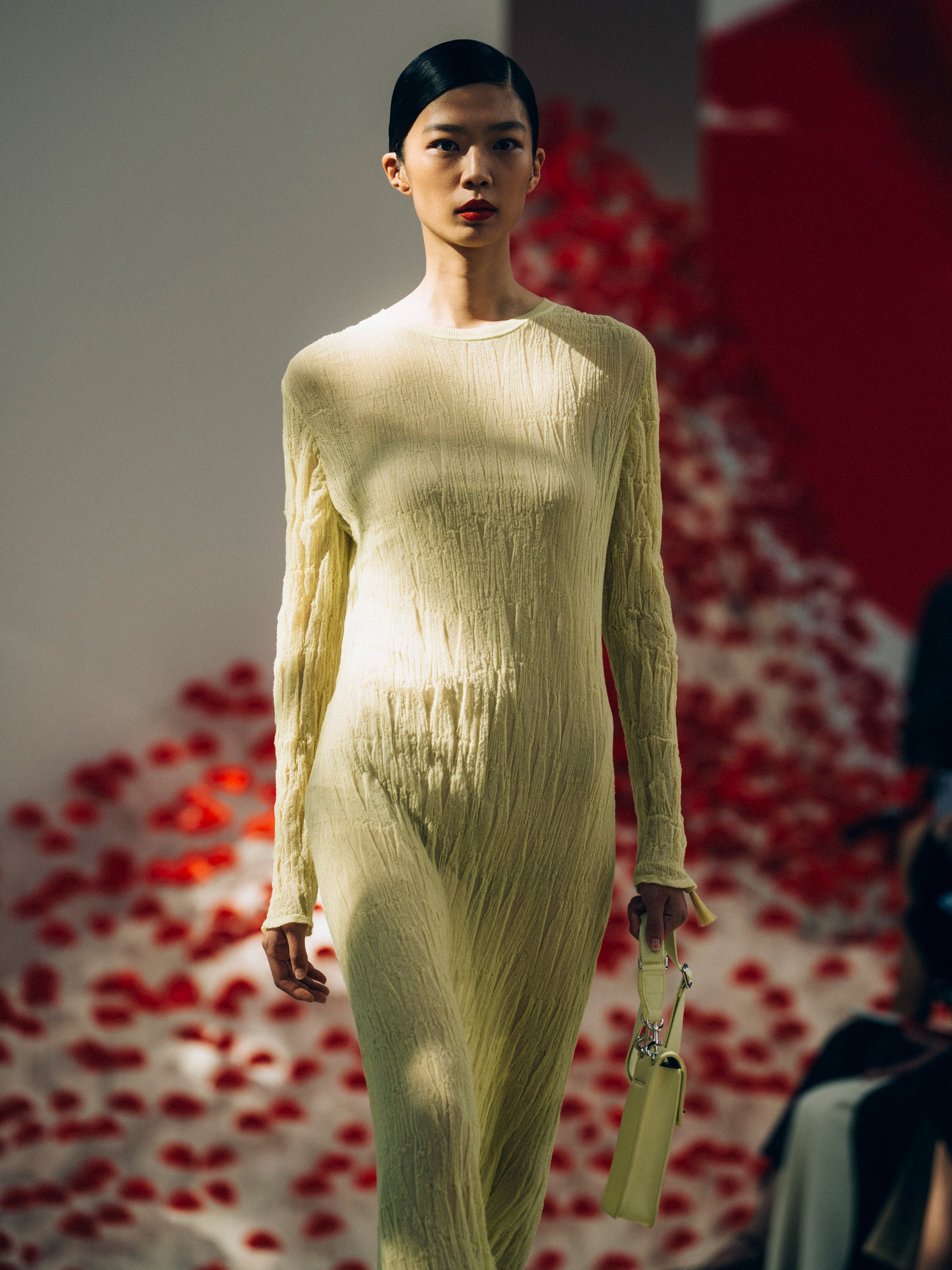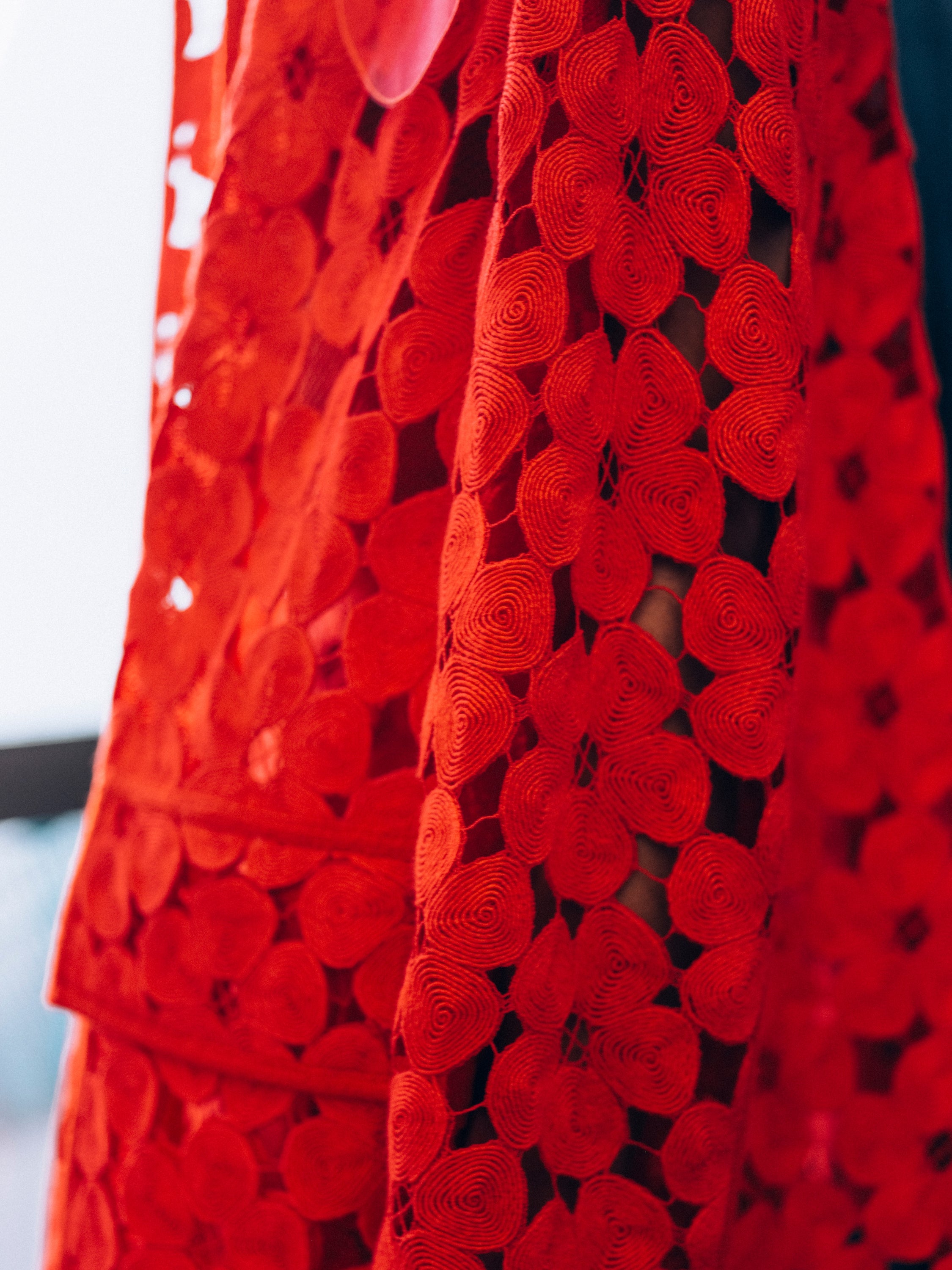 Lizzi was convinced that only inner creativity will lead to one’s identity, truly believing in the expressive possibilities of craft. Craft as an momentum – an idea that also guides Albert Kriemler in his work and in designing this Spring collection; woven into hand-embroidered poppies, tassels transformed into sleek fringe, and airy organza in suits and coats.