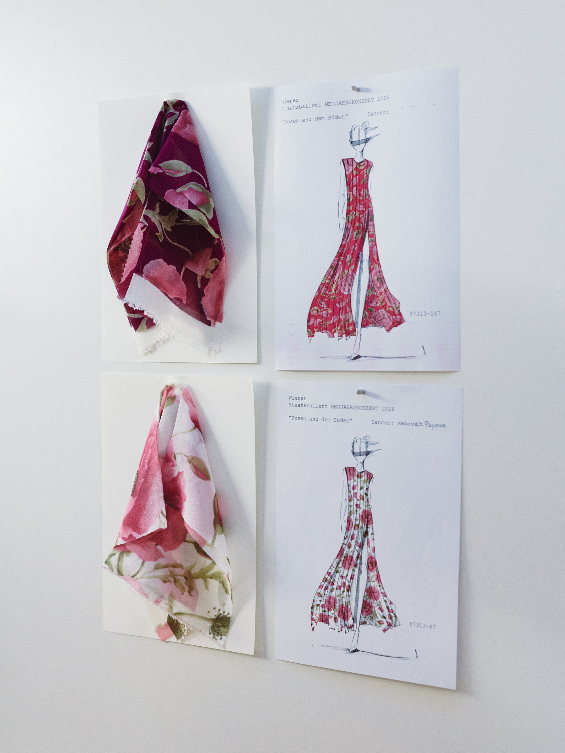 “I work with slits, pleated stripes, and play with silk georgette — a fabric I first held in my hands at 22 and have never really let go of since. I make ballet proposals only with my own fabrics. This one I’ve sourced for years from a weaver in Como.”